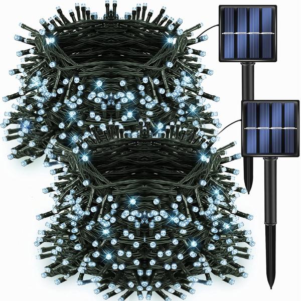 200 LED White Christmas Solar String Outdoor Lights Solar Powered with 8 Modes Waterproof Fairy Lights for Yard Decor