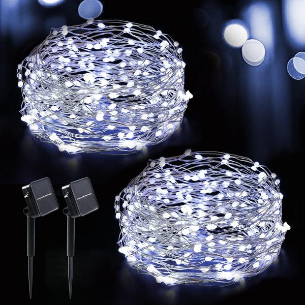 Solar Copper Wire Fairy Cold White Lights Outdoor 8 Modes Waterproof for Tent Tree Decoration