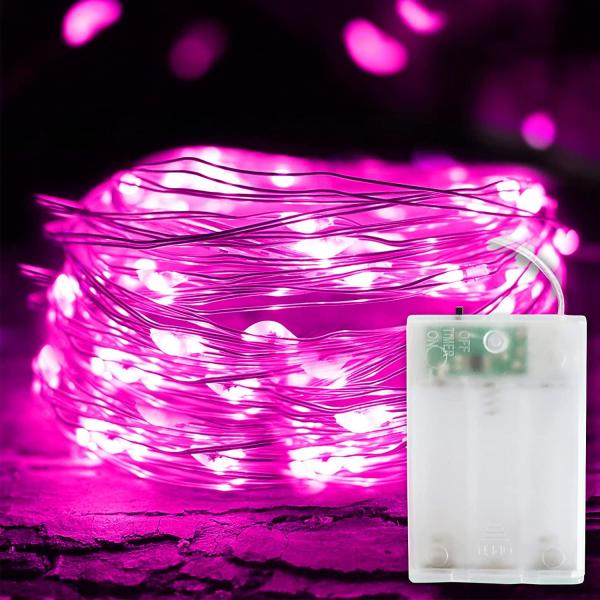 Indoor Battery Operated Pink Christmas Fairy Lights with Timer Copper Wire Starry Lights for Centerpiece Decoration